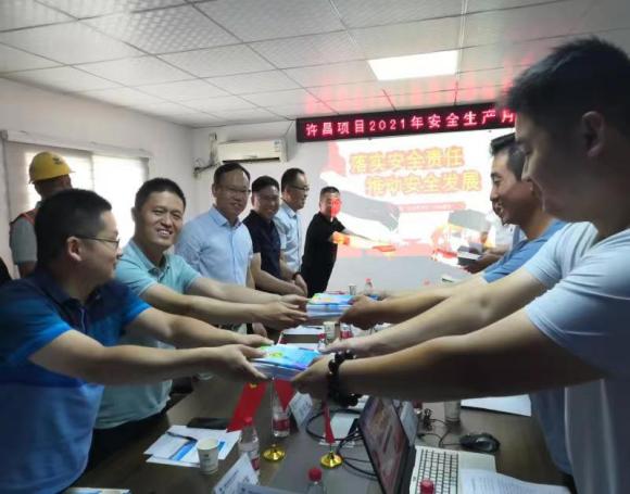 最后,投資總公司及智慧城市公司出席代表向項(xiàng)目全體人員發(fā)放了安全知識(shí)宣傳冊(cè),全員簽訂了安全承諾書,并在安全生產(chǎn)月主題橫幅上簽字。