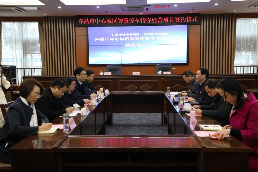 2023年2月10日,許昌市中心城區(qū)智慧停車特許經(jīng)營項目簽約儀式在市創(chuàng)業(yè)服務(wù)中心一樓會議室舉行。許昌市城管局黨組書記、局長楊宏善,許昌市城管局黨組成員、副局長范留柱,許昌市投資集團黨委書記、董事長楊增君,許昌市投資集團黨委副書記、總經(jīng)理李戈等出席簽約儀式。