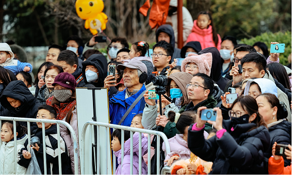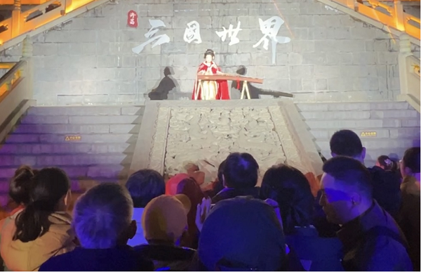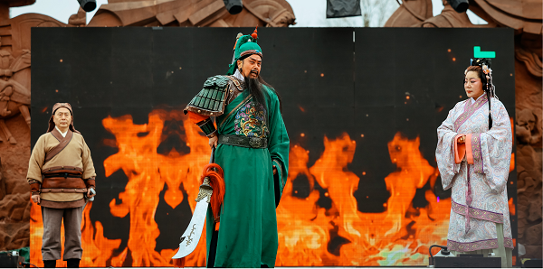 景區(qū)以三國文化為主題,打造了文廟武廟結(jié)合的行進(jìn)式光影秀《春秋・憶夢》,通過沉浸式演藝和建筑投影等創(chuàng)新形式,生動再現(xiàn)了關(guān)云長的英雄故事,為游客獻(xiàn)上了一場震撼心靈的文化盛宴。同時,景區(qū)還開展了多場《忠義千秋》情景劇演出,全新包裝的演員陣容和重新打造的演出內(nèi)容,吸引了眾多游客駐足觀看,贏得了陣陣掌聲。此外,夜間的古風(fēng)舞蹈、傳統(tǒng)器樂演奏及民俗文化表演,更是讓游客感受到了濃濃的新春年味,場場演出人氣爆滿。