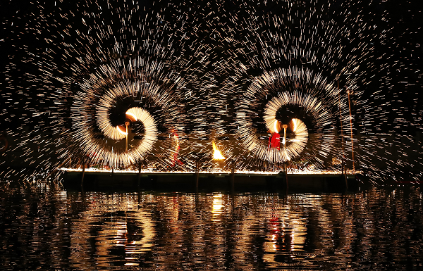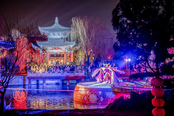 在灞陵橋景區(qū),首屆三國(guó)主題大型燈會(huì)構(gòu)建起“三國(guó)光影敘事長(zhǎng)廊”。30位三國(guó)人物NPC全天候散落景區(qū),開(kāi)園迎賓、三國(guó)大巡游、主題舞蹈、豫劇相聲輪番上演。“打鐵花”非遺表演與“水上飛人”特技在春節(jié)假期及元宵期間聯(lián)袂獻(xiàn)技,水火交融的視覺(jué)奇觀讓游客驚嘆不已。